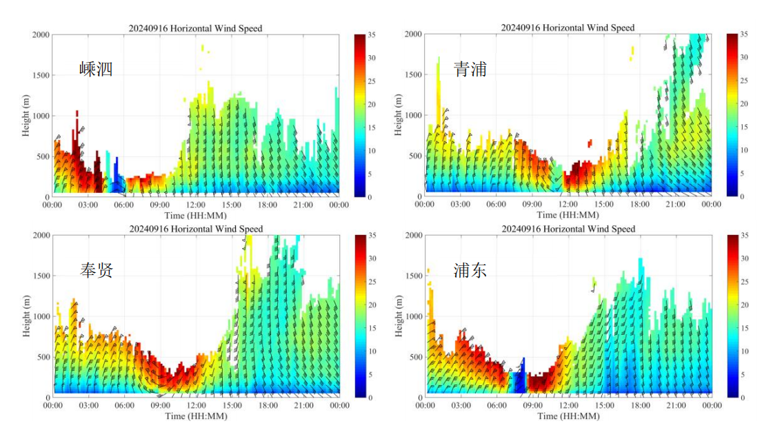 图2:分别布设在嵊泗、青浦、奉贤和浦东新区站点的测风雷达示意图