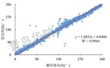 青岛华航针对海上风力观测的环境及特点,持续研发和改进海上漂浮式激光雷达系统,设备自2019年12月在浙江瑞安海域投放以来,经历了数月的连续观测,并与附近海域的测风塔进行为期半年的同期数据比对。与测风塔同期观测时段数据对比分析结果显示,青岛华航研制的漂浮式激光雷达测量数据具有出色的完整性和准确性,数据传输完整率大于99%,各高度4-16m/s 风速段拟合相关系数均在 0.98 以上,斜率均在 0.97-1.03 范围内,风向拟合斜率均在0.99-1.01之间,相关系数均在 0.99 以上,平均偏差在 2°以内,超过国际规范要求,表明了华航漂浮式激光雷达系统在多雨、雾的天气下及高湿盐度的海洋环境中运行具有很高的可靠性、稳定性以及数据准确性。