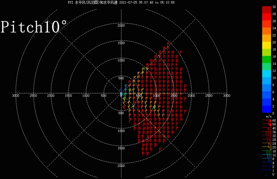 图5:7月25日5时10分测风激光雷达10°仰角水平风场图